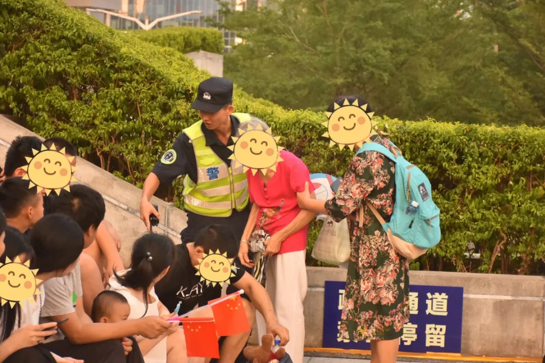 10月2日,深圳市公安局福田公安分局機(jī)動(dòng)訓(xùn)練大隊(duì)五中隊(duì)民警麥炳耀在燈光秀安保執(zhí)勤中,發(fā)現(xiàn)一位走失小孩的母親心急如焚在哭泣,麥炳耀邊安慰她邊向李曉峰副大隊(duì)長(zhǎng)、黃鎮(zhèn)雄副大隊(duì)長(zhǎng)報(bào)告情況,隨后大隊(duì)領(lǐng)導(dǎo)立即通過(guò)對(duì)講機(jī)向現(xiàn)場(chǎng)執(zhí)勤民警和隊(duì)員通報(bào)尋人啟事及人物特征,不久后,對(duì)講機(jī)傳來(lái)好消息,在民警麥炳耀帶領(lǐng)輔警張世鵬尋尋找下,終于在東廣場(chǎng)東北出入口處找到走失的兩個(gè)小孩并迅速通知小孩母親前來(lái)帶回。