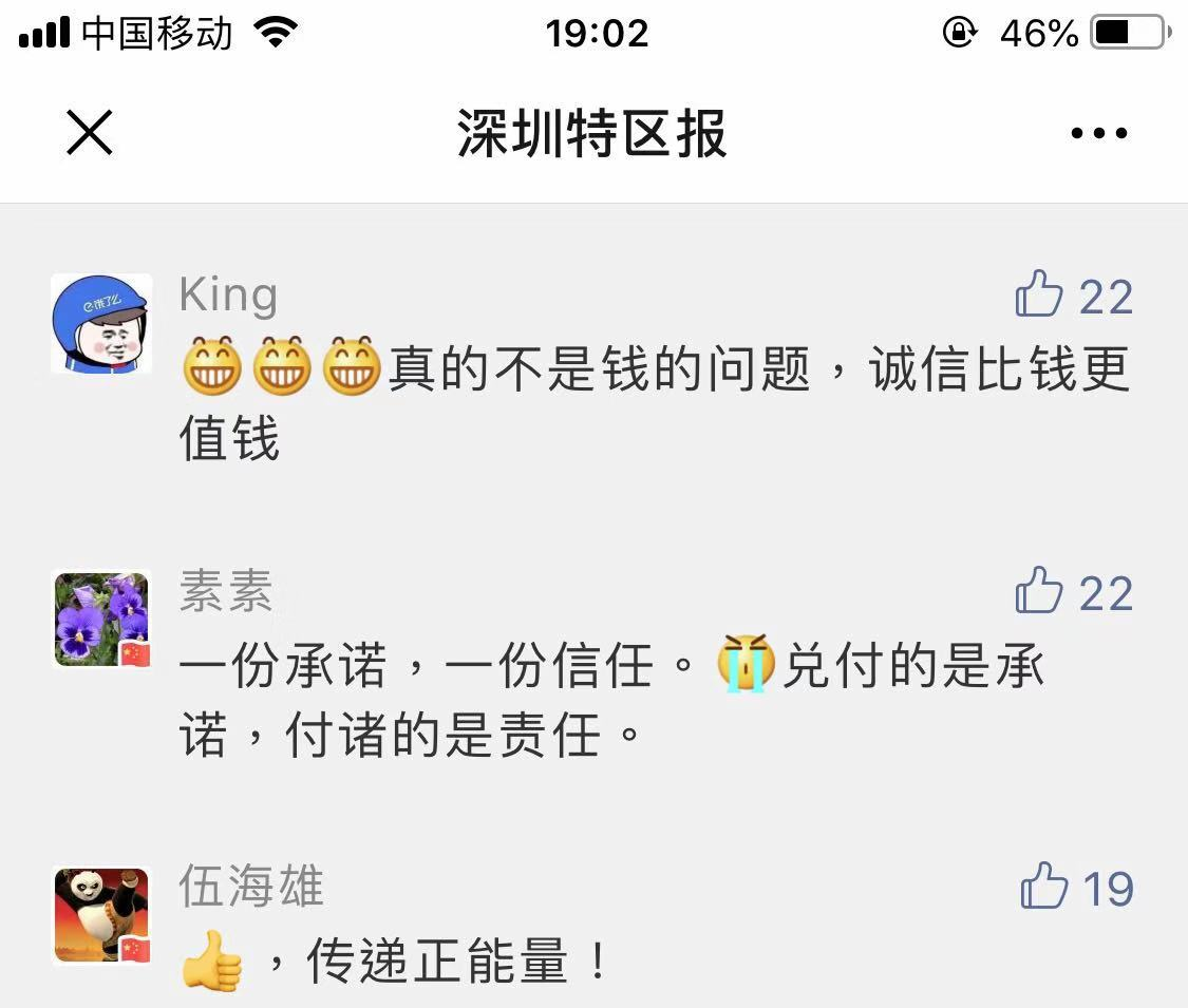 網(wǎng)友表示對雙方之間建立起來的誠信與信任感動,紛紛點(diǎn)贊!