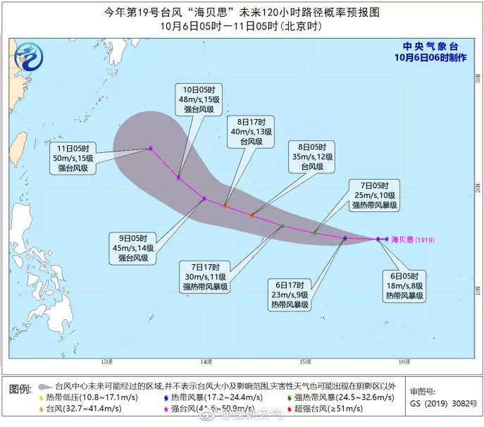 今年第19號臺風(fēng)“海貝思”(熱帶風(fēng)暴級)(英文名稱:Hagibis;名字來源:菲律賓;名字意義:褐雨燕)于今天凌晨2點(diǎn)鐘在西北太平洋洋面上生成,早晨8點(diǎn)鐘其中心位于美國關(guān)島偏東方約1180公里的西北太平洋洋面上。根據(jù)目前的預(yù)報(bào),它會早早拐彎北上,和我們一點(diǎn)關(guān)系都沒有。