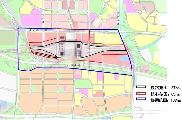 本次方案征集任務(wù)分核心區(qū)和協(xié)調(diào)區(qū)兩個(gè)層面。核心區(qū)面積約83ha(下圖紅色線范圍),本次方案征集需完成核心區(qū)范圍的建筑概念設(shè)計(jì);協(xié)調(diào)區(qū)包含核心區(qū),總面積約189ha(下圖藍(lán)色線范圍),本次方案征集需完成協(xié)調(diào)區(qū)范圍的概念性城市設(shè)計(jì);如有必要,可不限于此范圍。