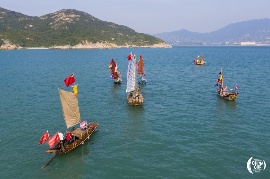 中式傳統(tǒng)帆船亮相中國杯帆船賽。(組委會(huì)供圖)