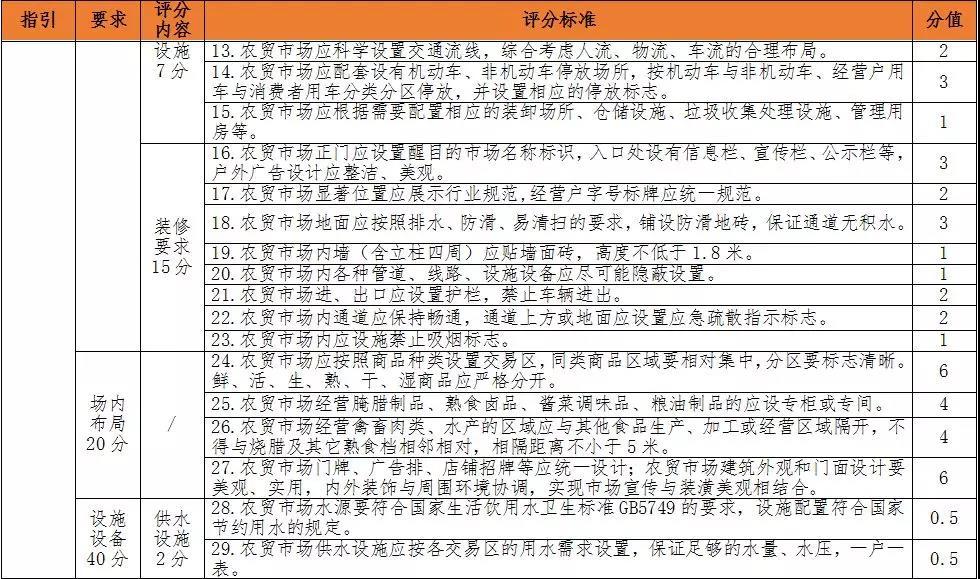 你想知道自家附近的農(nóng)貿(mào)市場(chǎng)達(dá)標(biāo)情況嗎?對(duì)照上面評(píng)審標(biāo)準(zhǔn)看看吧!