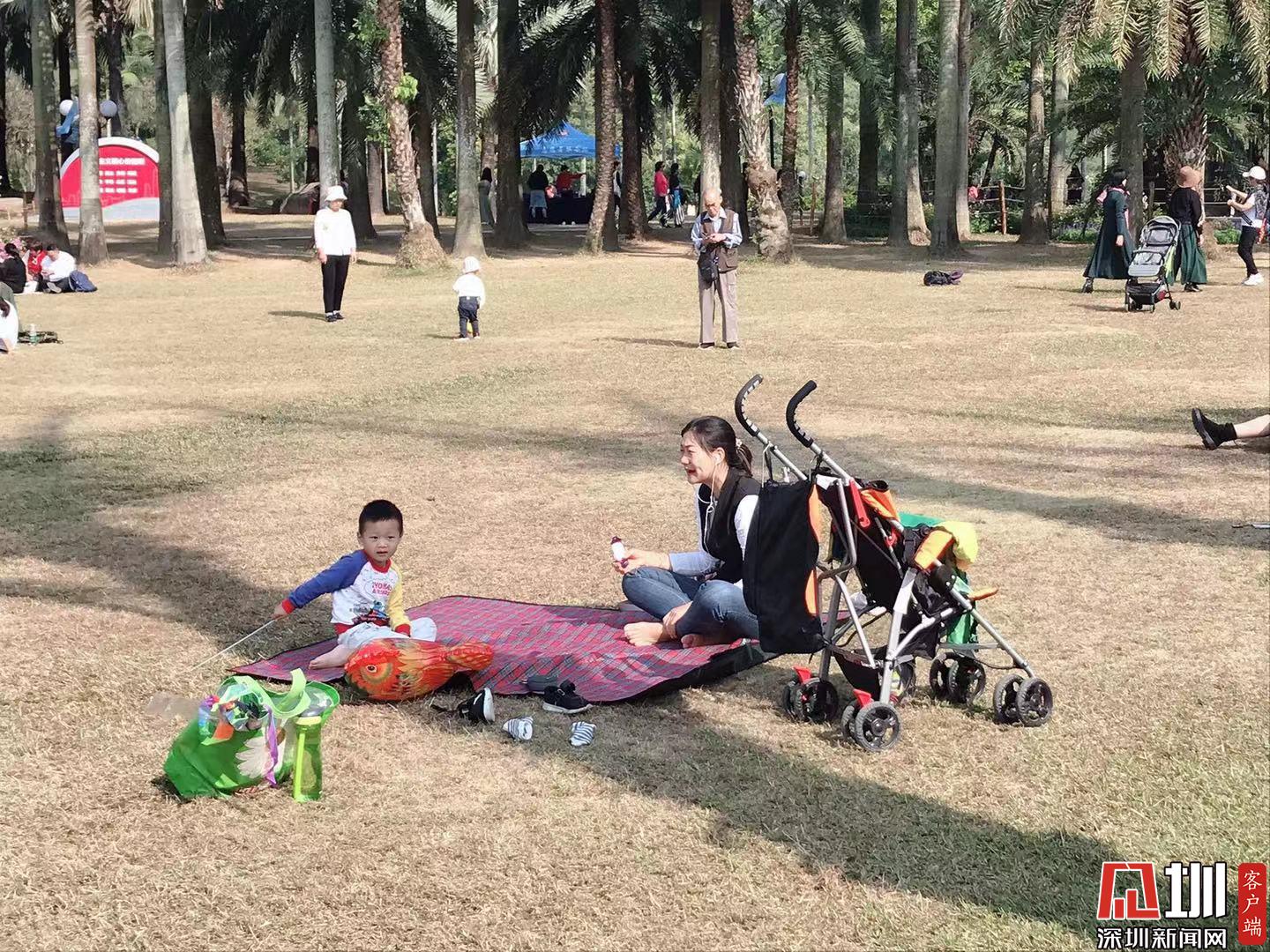 市民在蓮花山公園進行親子活動,草地干凈整潔,無留下任何垃圾。