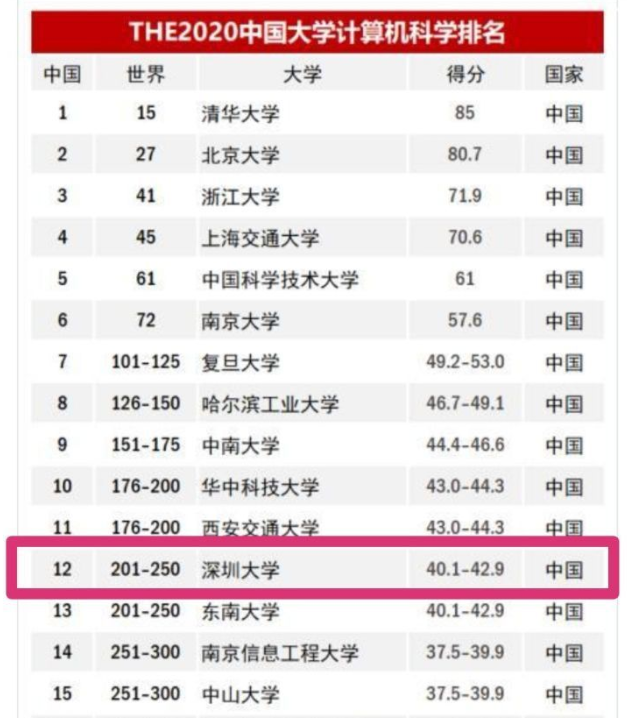 深圳商報2019年11月25日訊 近日,《泰晤士報高等教育》發(fā)布了世界大學學科的最新排名,對部分熱門專業(yè)進行了排名更新。根據(jù)計算機科學專業(yè)最新排名顯示,深圳大學計算機科學學科位列中國內地高校第12,較上一年度的泰晤士學科排名上升1位;世界排名從去年的301-400位進階至201-250位之間。