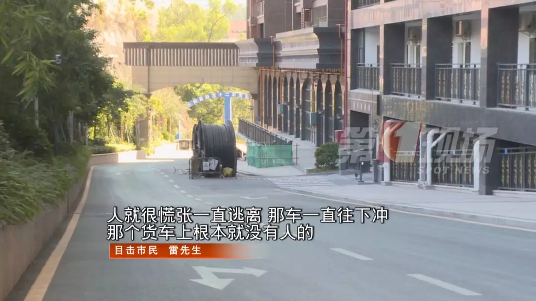 監(jiān)控中的這一幕發(fā)生在羅湖區(qū)的一個(gè)建筑工地旁,事發(fā)時(shí)間是11月26號(hào)下午的1點(diǎn)左右,有幾位市民正走在一條陡坡路上,他們聽到后面?zhèn)鱽黹_車的聲音,下意識(shí)地往路邊躲避。
