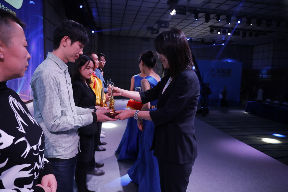 深新傳媒董秘王薇為“旅游行業(yè)最受網(wǎng)民歡迎品牌”頒獎。
