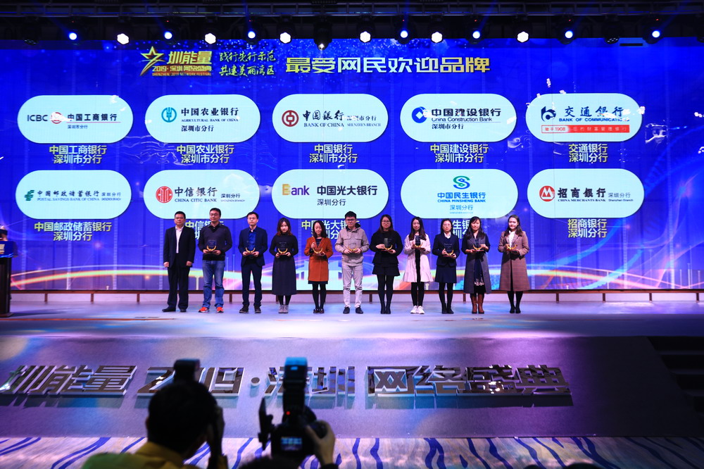 深圳市銀行業(yè)協(xié)會秘書長周漢為“銀行行業(yè)最受網(wǎng)民歡迎品牌”頒獎。