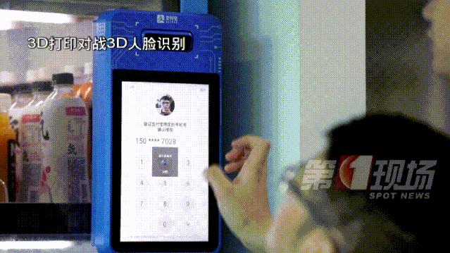 我們把頭模放在了自動(dòng)售賣機(jī)的識(shí)別系統(tǒng)前,支付系統(tǒng)并沒有直接通過(guò),而是發(fā)起了二次驗(yàn)證,輸入手機(jī)后,系統(tǒng)最終顯示支付失敗。
