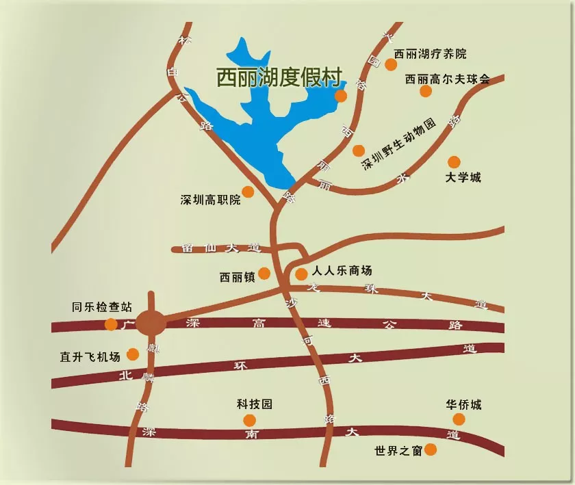 西麗湖度假村位于南山區(qū)西麗湖畔。擁有歌舞廳、高爾夫球場、釣魚中心、農(nóng)家樂等休閑設施,湖畔、村內(nèi)亭、廊、塔、寺各具特色。登上麒麟山,西麗湖美景盡收眼底。