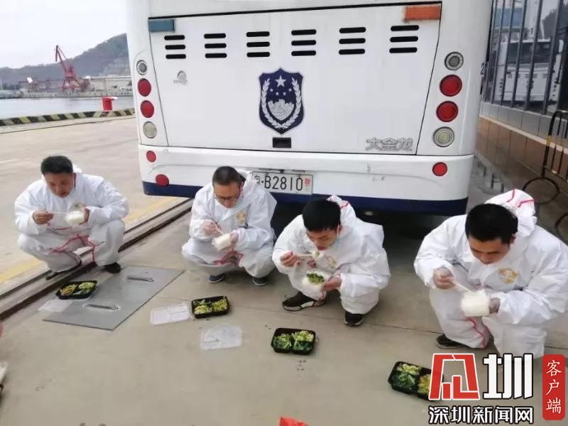 應(yīng)急轉(zhuǎn)運(yùn)“歌詩(shī)達(dá)·威尼斯號(hào)”乘客期間,工作人員抓緊時(shí)間吃午飯。