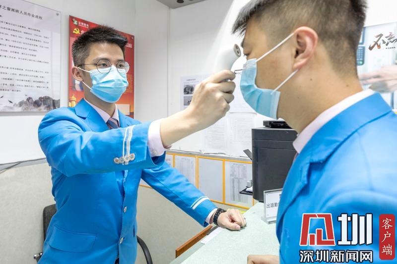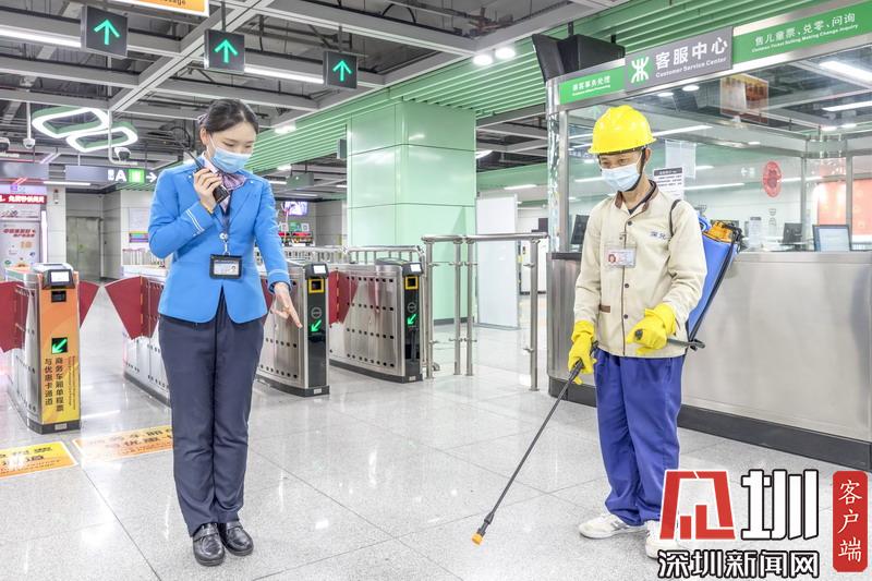深圳地鐵工作人員對(duì)往來(lái)乘客進(jìn)行體溫檢測(cè)。