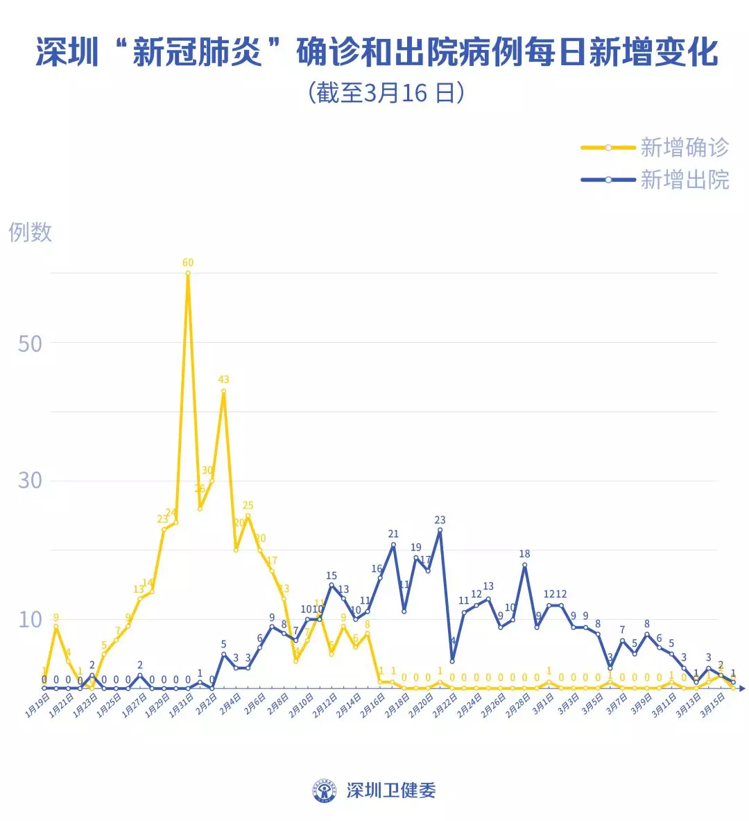 截至3月16日24時,深圳累計報告“新冠肺炎”病例423例。3月16日當天無新增,出院1例。