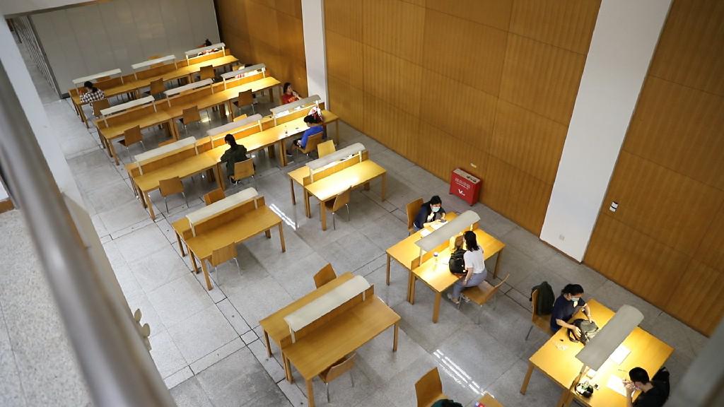 上午10時,深圳圖書館準時開館,讀者們經(jīng)過體溫檢測、預(yù)約信息核查、洗手消毒等程序后陸續(xù)有序進館。閱覽區(qū)域內(nèi),讀者有序地錯位就坐。"不用經(jīng)歷‘搶位大戰(zhàn)’就能落座閱讀,還真有些不習(xí)慣。"來自羅湖的深圳大學(xué)生張紫煜感嘆道。在閱讀完一本雜志后,張紫煜將雜志放入了大廳的自助圖書殺菌機中進行消毒。
