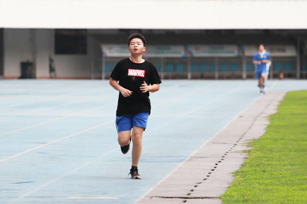 周六上午,在市體育中心體育場田徑場鍛煉的,大部分是即將參與體育中考的學(xué)生。李黨利與妻子一大早就帶著女兒來到田徑場。他說:"疫情發(fā)生后女兒基本上待在家里,前一陣子帶她到公園里跑一下,現(xiàn)在終于可以在體育場繼續(xù)訓(xùn)練了。"在女兒練習(xí)跑步時,李黨利也陪著沖刺,練得滿頭大汗。他說:"戴著口罩跑不太適應(yīng),等疫情結(jié)束了會跑得更盡興。"