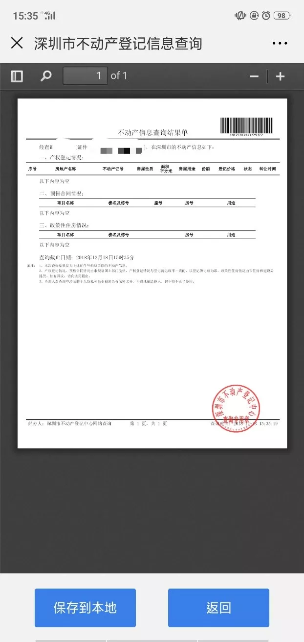 PDF文件里的電子公章是經(jīng)國家密碼管理局認證并通過公安部安全檢測合格的電子簽章系統(tǒng)印章。本查詢生成證明與深圳市不動產(chǎn)登記中心各登記所人工窗口及現(xiàn)場自助終端機打印結果具有同等效力。