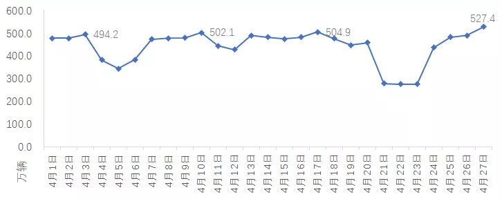 早晚高峰車流量逐日增加,高峰持續(xù)時間更長深圳早晚高峰交通流量以“星期”為單位呈現(xiàn)逐日上升趨勢,2月末全市車流量已恢復至正常工作日水平。3月末的497.6萬輛/天已超過去年同期的487.8萬輛/天。4月,全市車流量仍然呈上升趨勢,4月27日的車流量已達527.4萬輛/天。車流量的不斷激增、早晚高峰集中出行,導致高峰持續(xù)時間較往年更長。