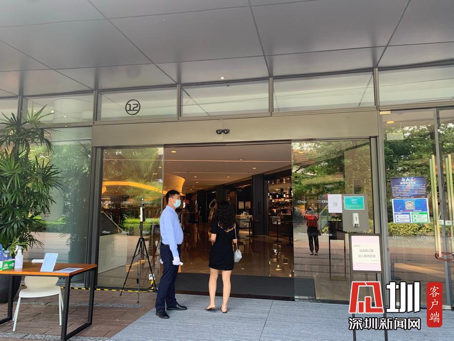 商場門口負責測量體溫的保安。