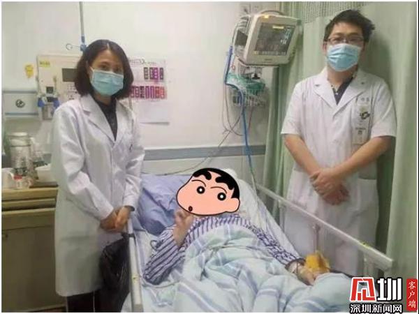 王威回憶:“做了7組心肺復(fù)蘇后,劉先生似乎曾有輕微的反應(yīng)。我后來也沒敢松懈,一直堅(jiān)持做到醫(yī)護(hù)人員來到現(xiàn)場(chǎng)?!?/p> 病情危急 入院搶救后轉(zhuǎn)危為安 16:43分左右,羅湖醫(yī)院急診科醫(yī)護(hù)人員接到120指揮部出車通知后,以最快速度到達(dá)了現(xiàn)場(chǎng),立即開始接手現(xiàn)場(chǎng)救治。當(dāng)時(shí),王威已經(jīng)為劉先生做了7分鐘心肺復(fù)蘇。醫(yī)護(hù)人員迅速評(píng)估劉先生生命體征,發(fā)現(xiàn)他仍無呼吸、無心跳,立即繼續(xù)心肺復(fù)蘇并即時(shí)進(jìn)行心電監(jiān)護(hù),建立靜脈通路,開放氣道、球囊輔助通氣并注射腎上腺素。心電監(jiān)護(hù)提示室顫,在除顫2次后,劉先生恢復(fù)了自主呼吸和心跳,被送往羅湖醫(yī)院急診科進(jìn)一步救治。