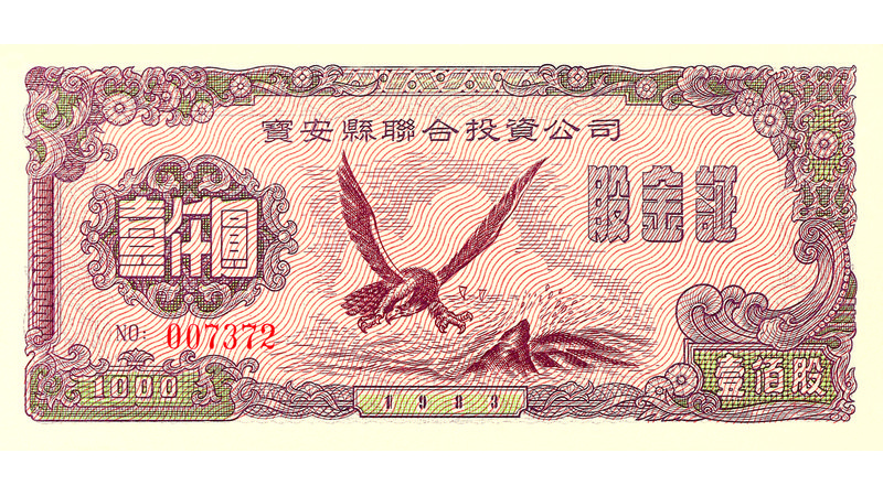 1983年中國(guó)寶安集團(tuán)發(fā)行的新中國(guó)第一張股票