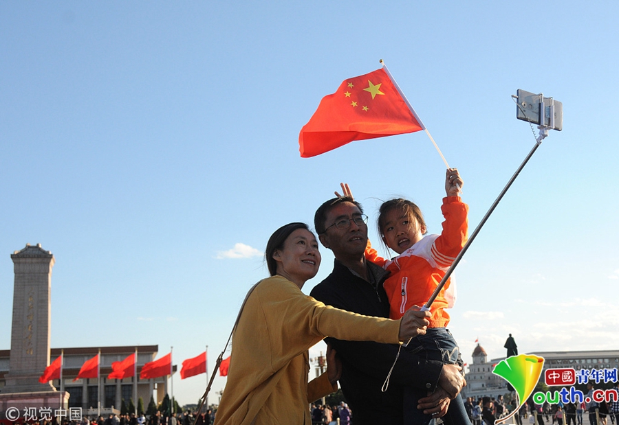 北京迎來高顏值好天氣 游客紛紛在天安門廣場拍照留影