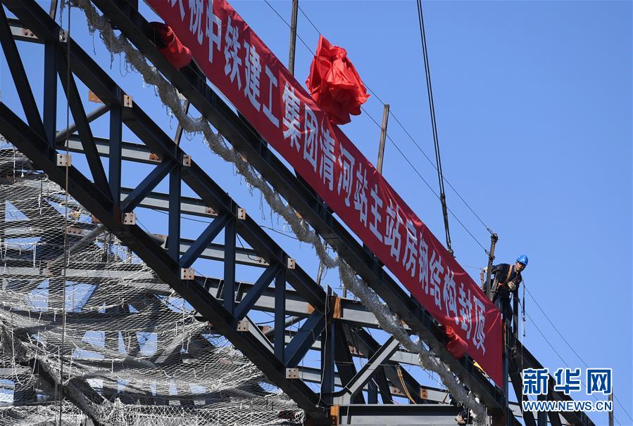 10月17日拍攝的建設(shè)中的清河站。當(dāng)日,京張高鐵新建車站——清河站主體結(jié)構(gòu)正式封頂。清河站是京張高鐵建筑面積最大的車站,同時(shí)也是京張高鐵在北京地區(qū)的始發(fā)站之一。 新華社發(fā)(馮凱 攝)