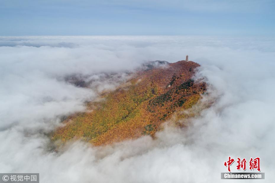 10月6日晨曦到中午,黑龍江雞西,中俄界湖興凱湖北岸蜂蜜山國(guó)家地質(zhì)公園,再現(xiàn)云海為長(zhǎng)假收關(guān)。 圖片來源:視覺中國(guó)