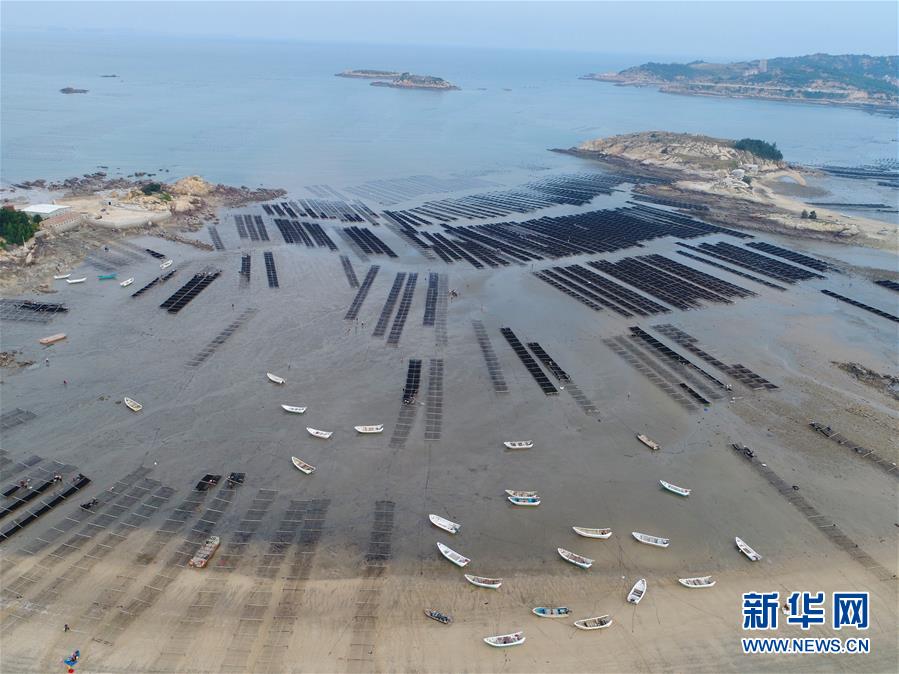 10月24日,福建莆田蔣山村村民在收獲紫菜?! ⌒氯A社記者姜克紅 攝