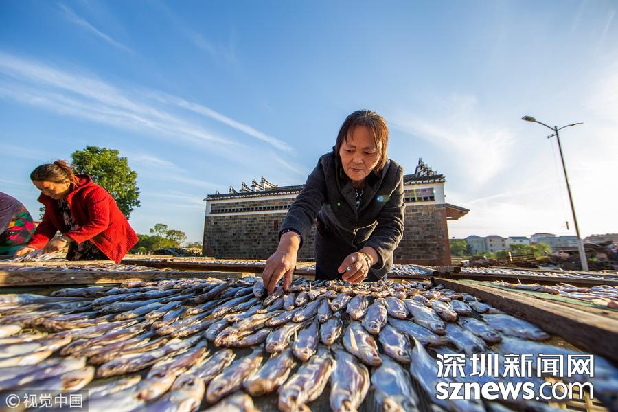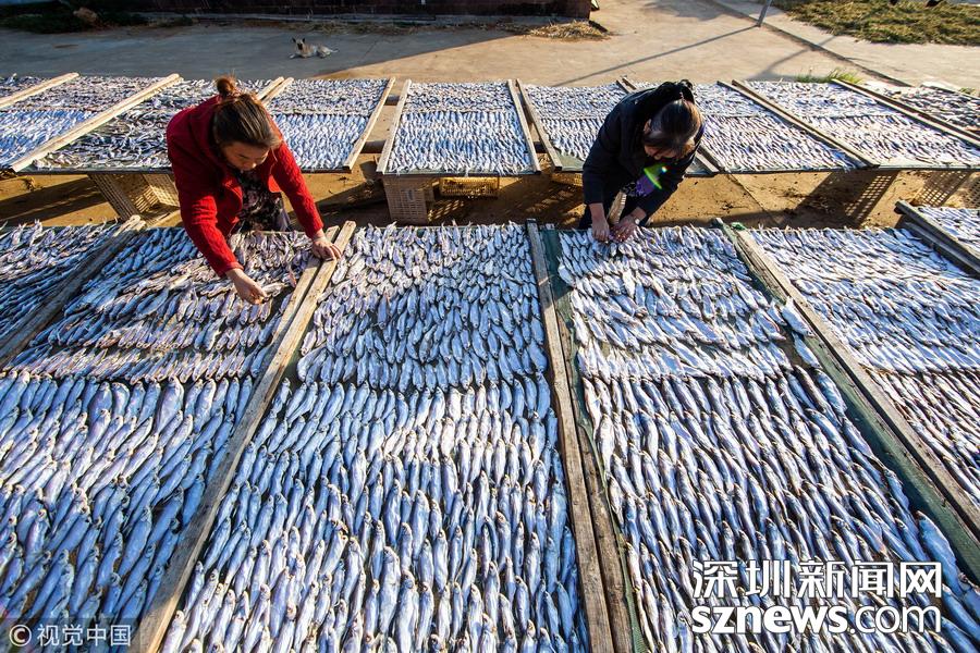 深圳新聞網(wǎng)訊 連日來,秋風颯爽,艷陽高照,當?shù)貪O村迎來豐收季,漁民們在鄱陽湖畔的漁港岸邊和屋前屋后晾曬魚蝦,忙的不亦樂乎。