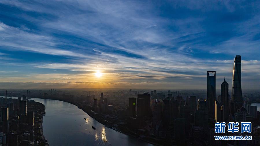 11月1日,上海浦江兩岸的建筑沐浴在晨光中。 首屆中國國際進口博覽會即將在上海開幕。美麗的上海張開懷抱,迎接八方來客。 新華社記者 沈伯韓 攝
