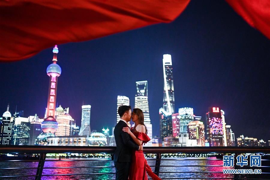 11月1日,一對青年男女在上海外灘拍攝婚紗照。首屆中國國際進(jìn)口博覽會即將在上海開幕。美麗的上海張開懷抱,迎接八方來客。 新華社記者 陳曄華 攝