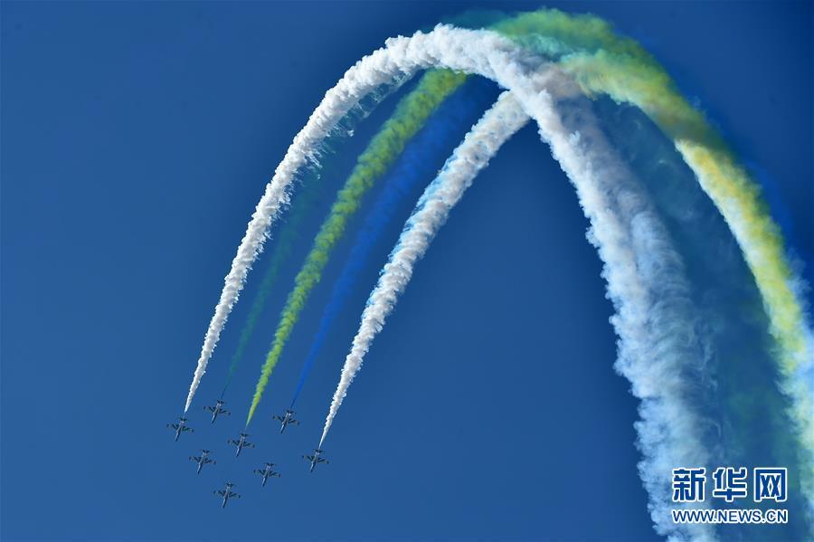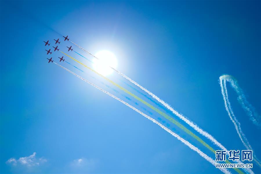 11月6日,中國空軍八一飛行表演隊在航展現(xiàn)場進行飛行表演。當日,第十二屆中國國際航空航天博覽會在珠海開幕。新華社記者鄧華攝