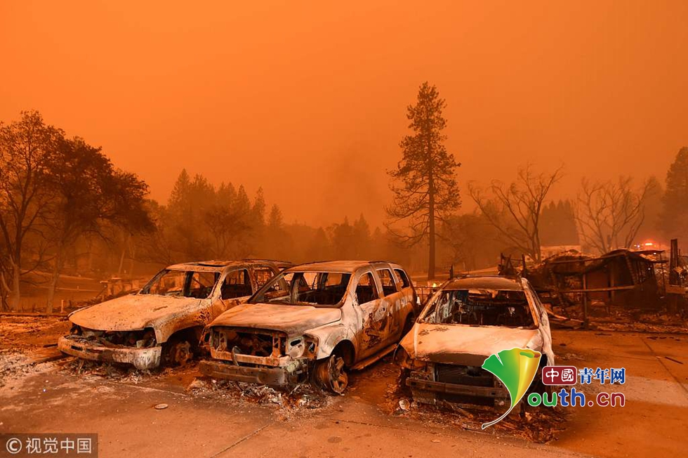 自本周三開始,加州多地發(fā)生山火,火勢蔓延迅猛,數(shù)萬人被迫撤離,數(shù)以萬計的房屋被燒毀。截至當(dāng)?shù)貢r間11日,全州內(nèi)的多起山火已致總計31人遇難,其中北部的“坎普”山火導(dǎo)致29人死亡。圖片作者:Jessica Christian