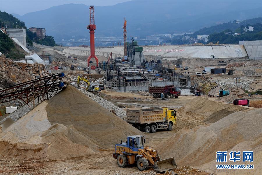這是正在加緊建設(shè)的福建閩江水口水電站壩下工程(11月23日攝)。