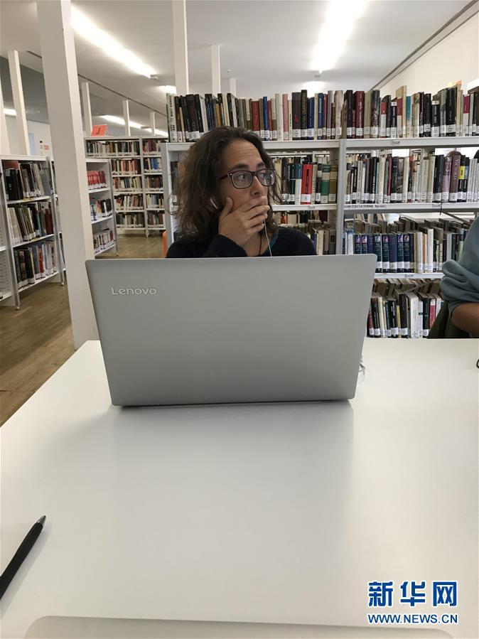 2018年10月29日,一名市民在西班牙馬德里孔德·杜克圖書館內使用聯想電腦。新華社記者郭求達攝