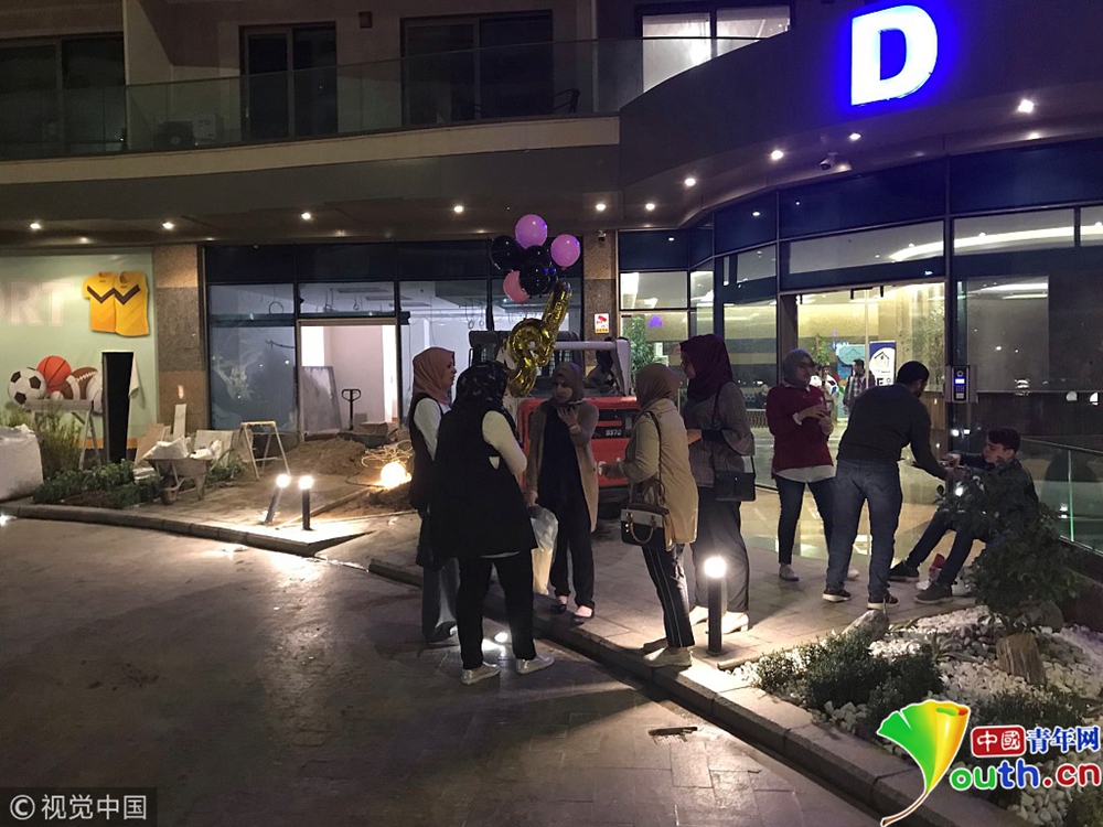 當(dāng)?shù)貢r間2018年11月25日,伊拉克埃爾比勒,民眾在建筑外避難。伊朗西部克爾曼沙阿省25日發(fā)生6.4級地震。目前尚無人員傷亡和財產(chǎn)損失報告。
