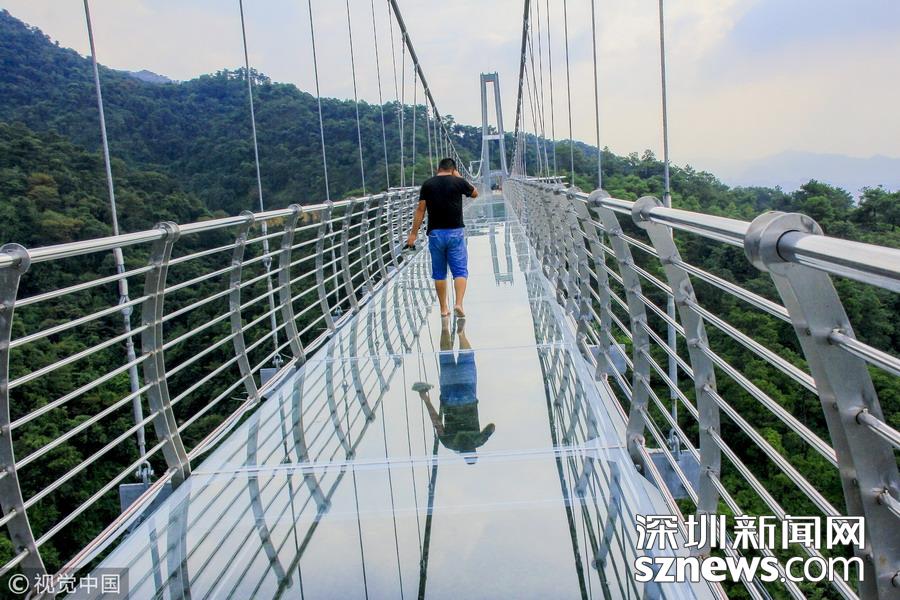 廣東清遠(yuǎn):臺(tái)風(fēng)“山竹”過(guò)后 最長(zhǎng)玻璃橋安然無(wú)恙