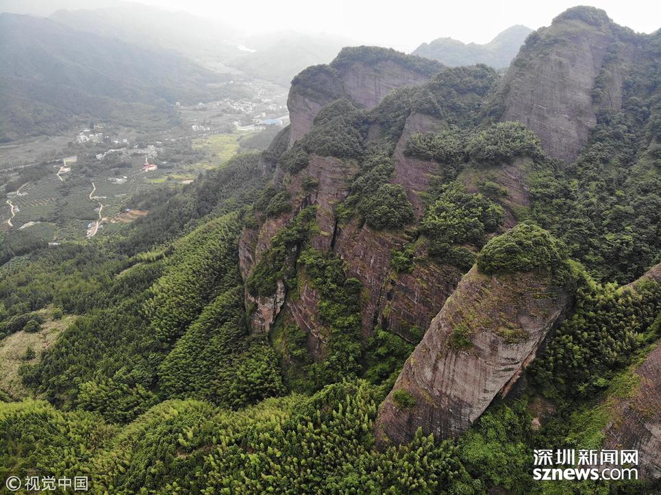 航拍位于贛粵兩省交界處的江西南武當(dāng)山。 南武當(dāng)山擁有99座千姿百態(tài)的巍峨石峰,丹霞地質(zhì)風(fēng)貌突出,連綿十里,被稱為“武當(dāng)十里畫(huà)廊”。