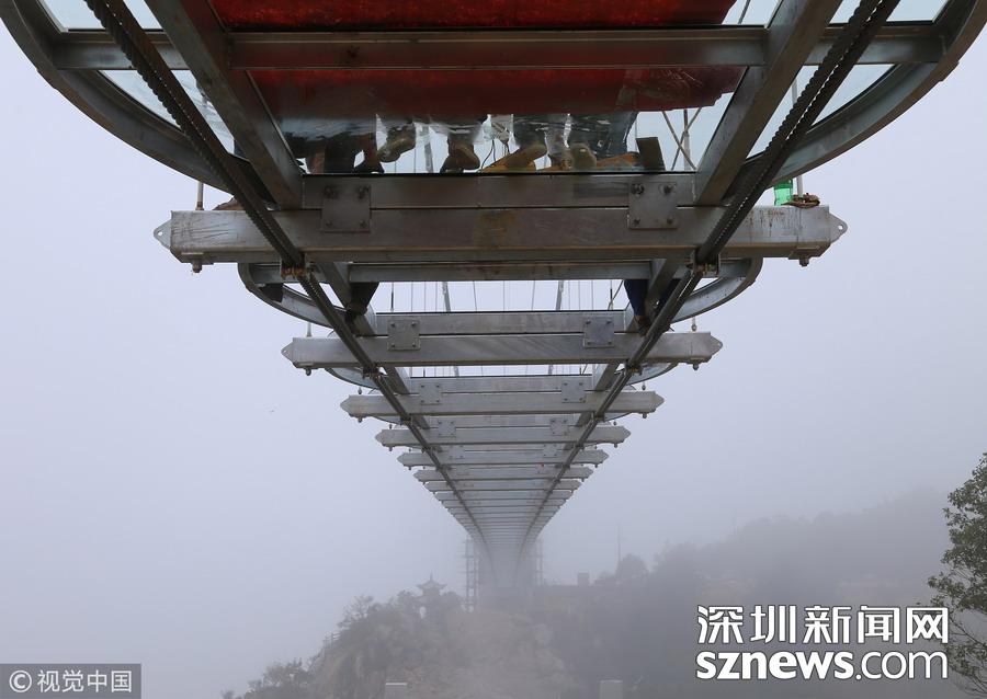 2018年8月,廣東清遠(yuǎn)。如今,玻璃橋、玻璃觀景臺(tái)、玻璃漂流道、玻璃滑道等玻璃產(chǎn)品可以說(shuō)多如牛毛,琳瑯滿目。這些玻璃產(chǎn)品都是水平的,即使有坡度,也是借助工具滑下去的。小伙伴們是否挑戰(zhàn)體驗(yàn)過(guò)像樓梯一樣的玻璃天梯,階梯式攀向高處,直聳云宵,云霧飄渺。
