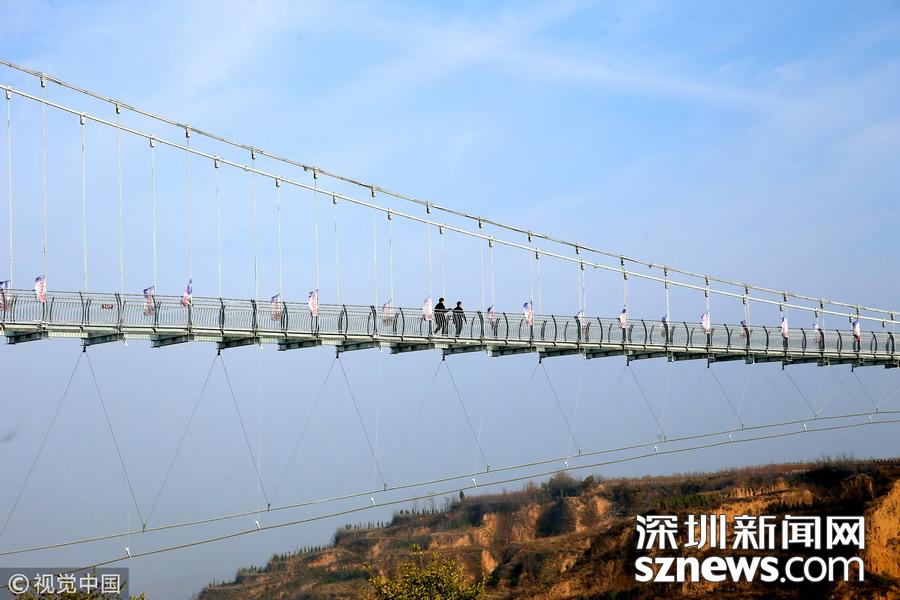 實(shí)拍地坑院景區(qū)玻璃天橋 全長(zhǎng)318米高108米