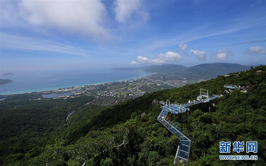 8月31日,游客在玻璃觀景平臺(tái)上參觀游覽。近日,位于海南省三亞市亞龍灣熱帶天堂森林公園的大佛石全海景玻璃棧道開(kāi)始正式營(yíng)業(yè)。凌空而建的玻璃棧道全長(zhǎng)400米,游客可將亞龍灣的美景盡收眼底。新華社記者郭程攝
