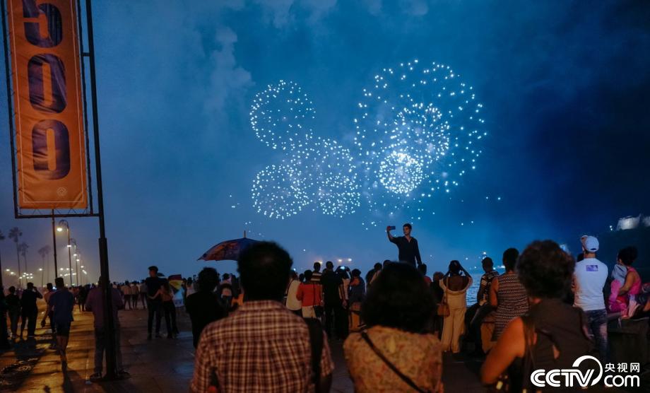 當(dāng)?shù)貢r(shí)間2019年11月15日,古巴哈瓦那,當(dāng)?shù)厝挤艧熁☉c祝哈瓦那建城500周年。2019年11月16日是古巴首都哈瓦那建城500周年紀(jì)念日。視覺(jué)中國(guó)