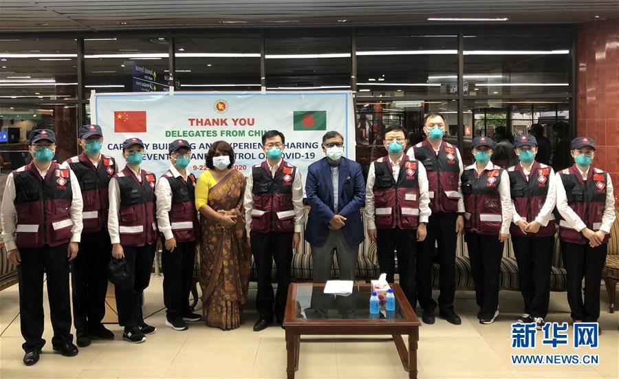 6月22日,孟加拉國衛(wèi)生和家庭福利部部長馬利克(右六)等在首都達(dá)卡舉行的送行儀式上與中方專家組合影留念。中國赴孟加拉國抗疫醫(yī)療專家組圓滿完成任務(wù),于22日乘機(jī)返回祖國。孟加拉國衛(wèi)生和家庭福利部部長馬利克對疫情發(fā)生以來中國給予孟加拉國的大力支持表示感謝。新華社記者劉春濤攝