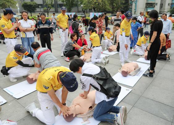 深圳市賽場救護隊的專業(yè)人員在現(xiàn)場為蓮花一村的社區(qū)居民普及了大眾急救技能,并指導大家進行模擬心肺復蘇的演練,中老年朋友則享受了免費的體質(zhì)檢測服務(wù)。