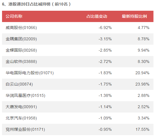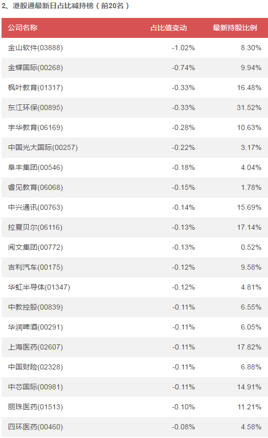 備注:以上數(shù)據(jù)由智通機器人根據(jù)港交所數(shù)據(jù),經(jīng)過人工智能運算后自動生成,并不保證數(shù)據(jù)100%準確;變動百分比為變動絕對值,如前一日占比為1%,后一日為2%,則變動百分比為增加1%。