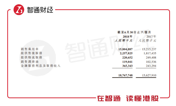 上半年,該公司收入增長20.1%,其中乘用車銷售收入增長19.6%,售后服務(wù)收入增長為24.3%,供應(yīng)鏈業(yè)務(wù)收入下滑3.4%,金融服務(wù)收入增長50.2%,以上四類收入貢獻(xiàn)分別為84.2%,12%、1.8%和2%,收入增長貢獻(xiàn)分別為82.5%、14%、-0.4%和3.9%。