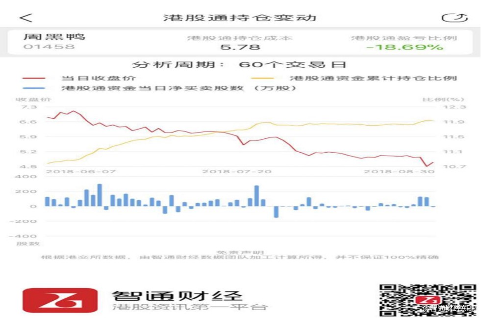 不僅如此,根據(jù)智通財(cái)經(jīng)APP的數(shù)據(jù),近三個(gè)月以來內(nèi)地資金持續(xù)通過港股通渠道加倉周黑鴨,與公司股價(jià)下行趨勢形成明顯的背離。
