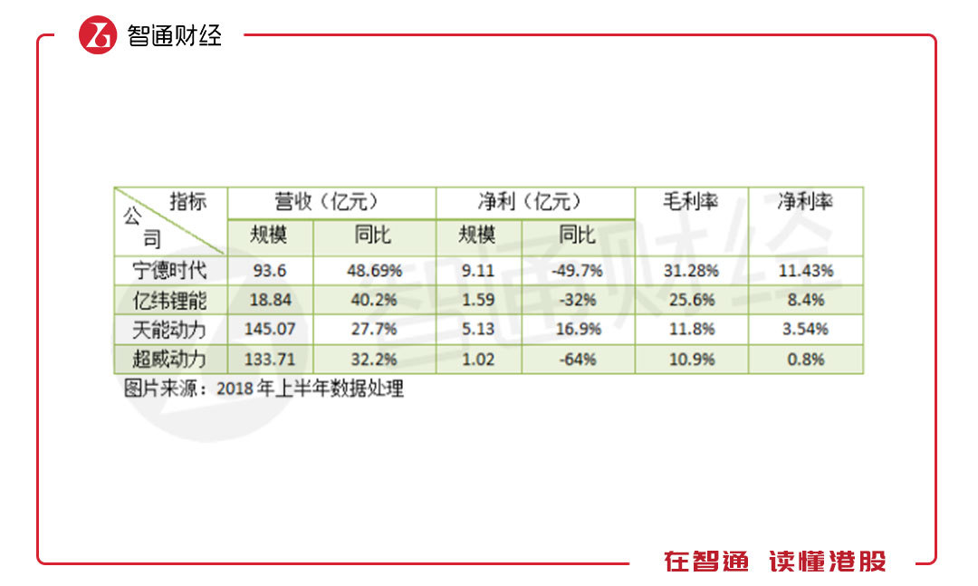 兩大鉛酸電池龍頭天能動(dòng)力(00819)和超威動(dòng)力(00951)也在積極轉(zhuǎn)型生產(chǎn)鋰動(dòng)力電池,鋰動(dòng)力電池成為國(guó)內(nèi)未來(lái)電池行業(yè)角逐的主要戰(zhàn)場(chǎng)。鋰電池的成長(zhǎng)能力及盈利能力要比鉛酸電池高,上半年,由于政策影響,鋰電行業(yè)凈利潤(rùn)出現(xiàn)下滑較大,但凈利率仍遠(yuǎn)高于鉛酸電池。