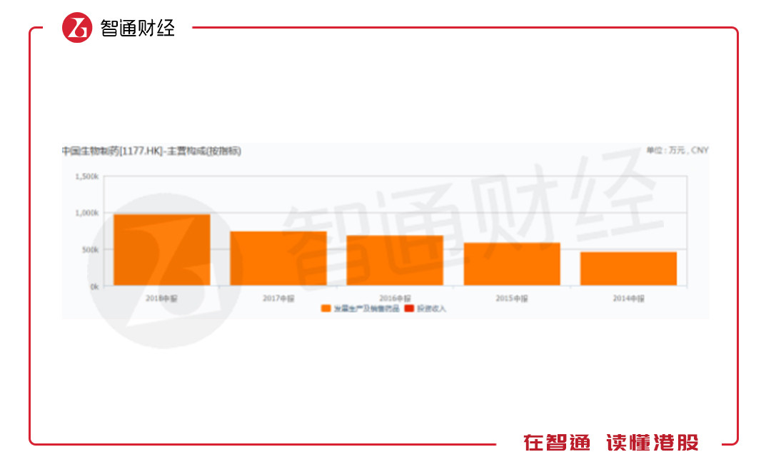 再說中國生物制藥,2018年中期的收入是97.25億,同比增長30%;歸屬于母公司持有者應占盈利約13.66億,同比增長24.1%。期間計入權(quán)益投資和金融資產(chǎn)未實現(xiàn)公允價值利潤及虧損和海外匯兌差異凈額前,歸屬于母公司持有者應占盈利約14.27億元,較去年同期增長約41.9%。