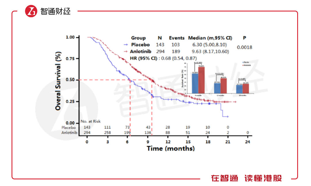 數(shù)據(jù)顯示,安羅替尼是一類口服、新型小分子多靶點酪氨酸激酶抑制劑(TKI)藥物,從臨床上還可,能夠有效抑制血管內(nèi)皮生長因子受體(VEGFR)、血小板衍生生長因子受體(PDGFR)、成纖維細胞生長因子受體(FGFR)、c-Kit等激酶,具有抗腫瘤血管生成和抑制腫瘤生長的作用。其適應癥很廣,可以治療肺癌、結(jié)直腸癌、腎癌、軟組織肉瘤、甲狀腺癌、胃癌等。
