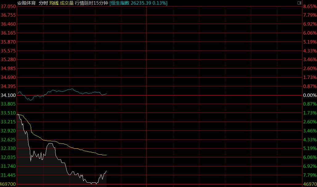 智通財(cái)經(jīng)APP獲悉,安踏體育(02020)盤(pán)中跌至31.2港元,創(chuàng)年內(nèi)新低,截至10時(shí)50分,跌8.5%,報(bào)價(jià)31.2港元,成交額2.28億。